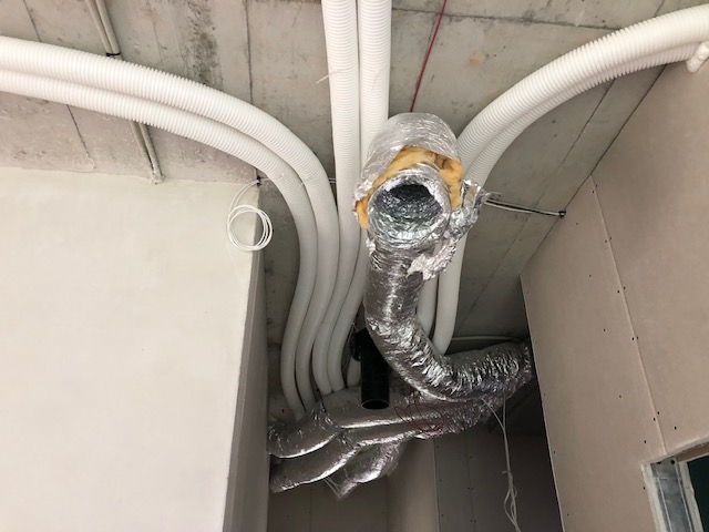 Išvežioti interneto, priešgaisrinės ir signalizacijos laidai;