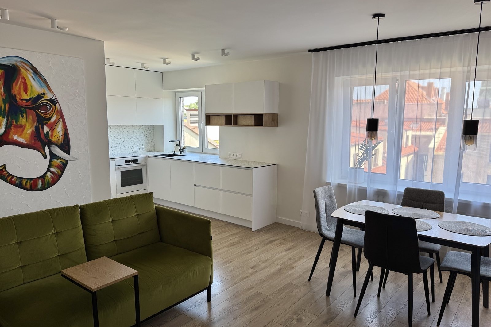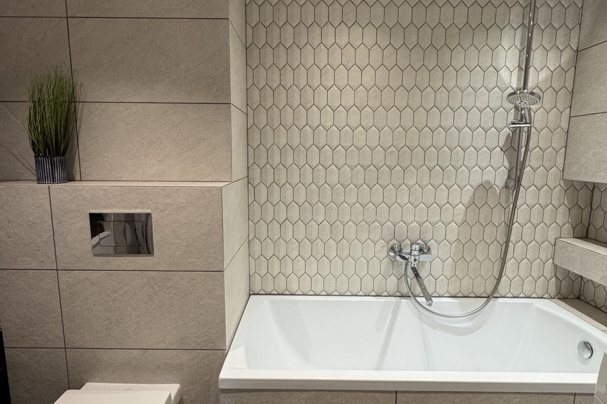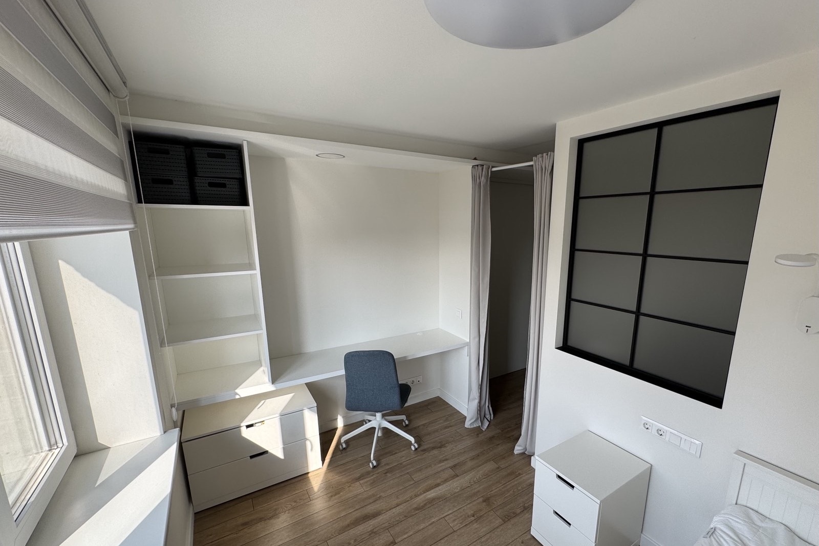 Svetainė sujungta su virtuve, vonia su WC kartu. Bute paliekami visi baldai ir Bosch buitinė technika.