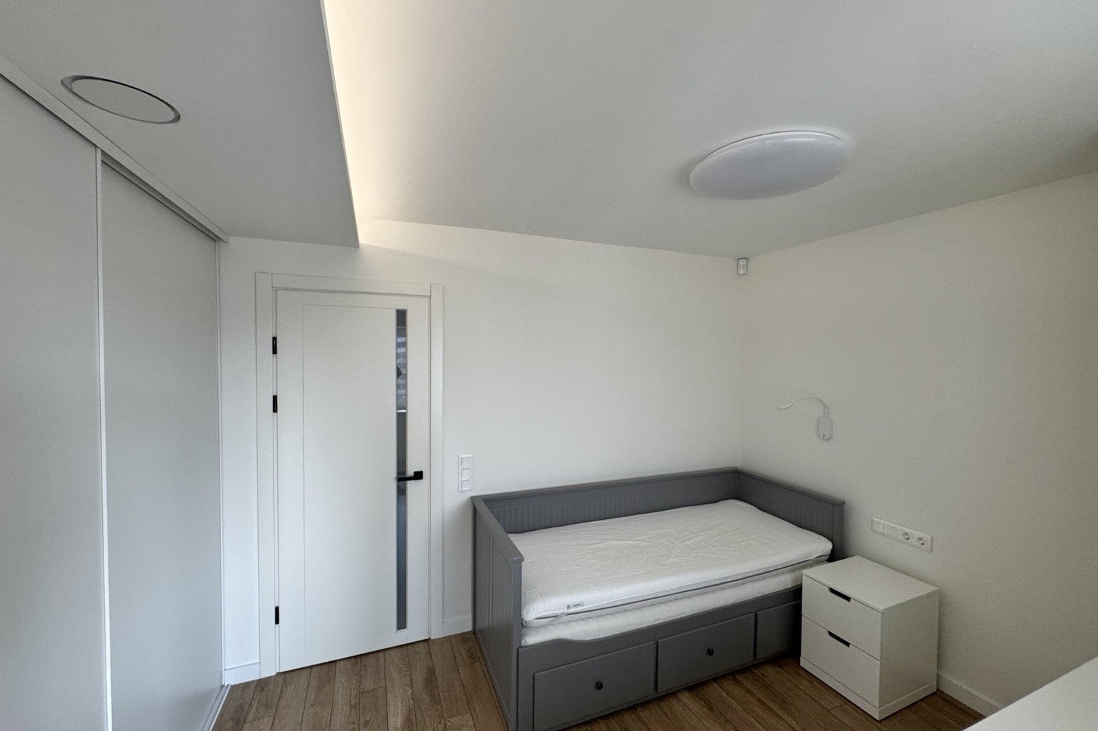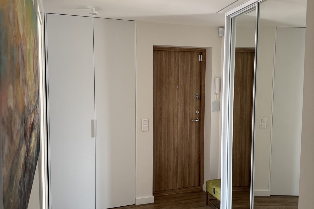 Kapitališkai kokybiškai suremontuotas: lauko šarvuotos durys, kambariuose uosinės durys, grindų laminatas, šildomos grindys vonioje, pakeisti radiatoriai, A++ klasės sandarūs plastikiniai langai orientuoti į vakarų-rytų puses, pro kuriuos atsiveria grąžūs miesto vaizdai. Oro kondicionierius šaldo-šildo, komfovent rekuperatorius, signalizacija, seifas.