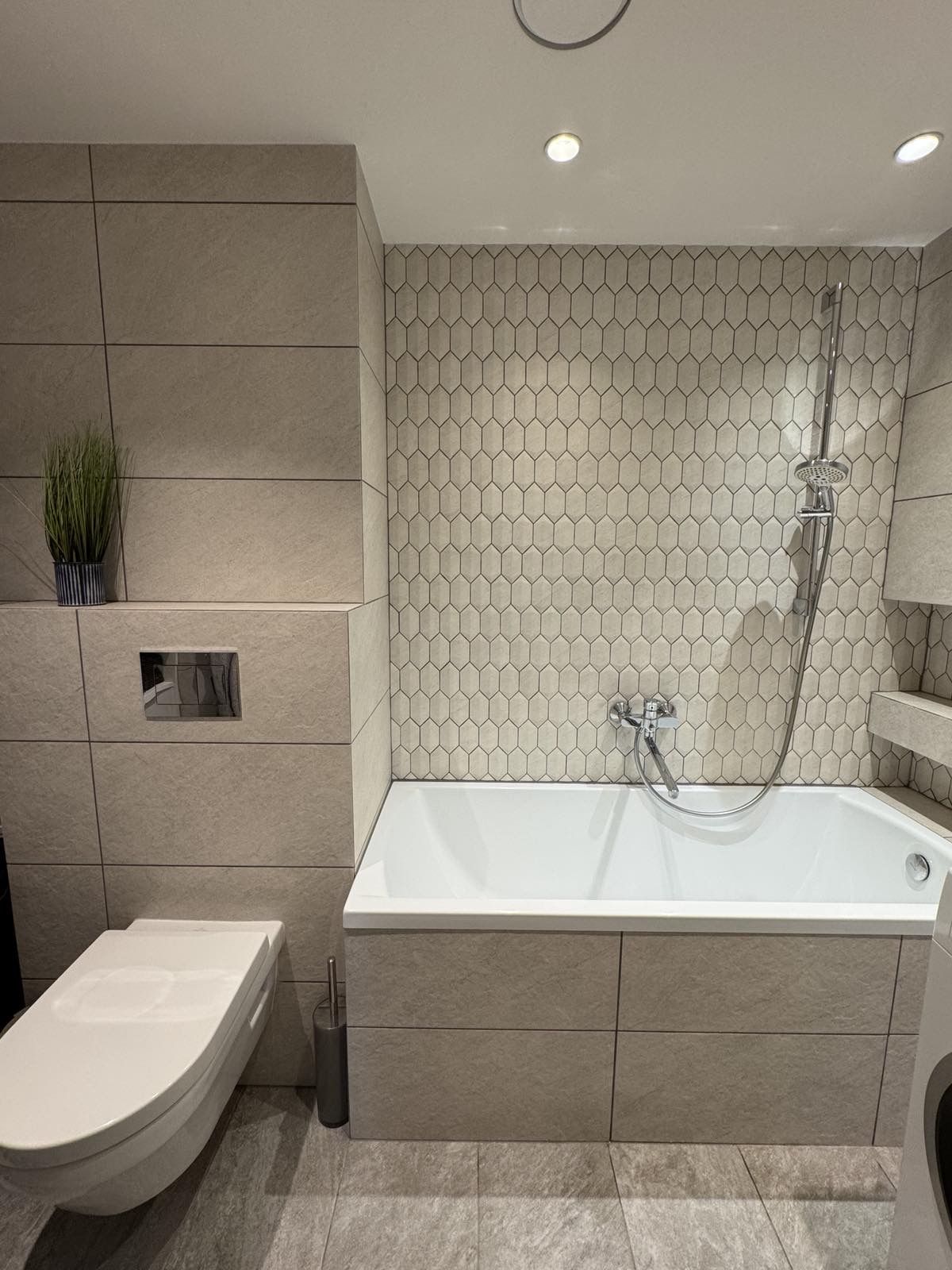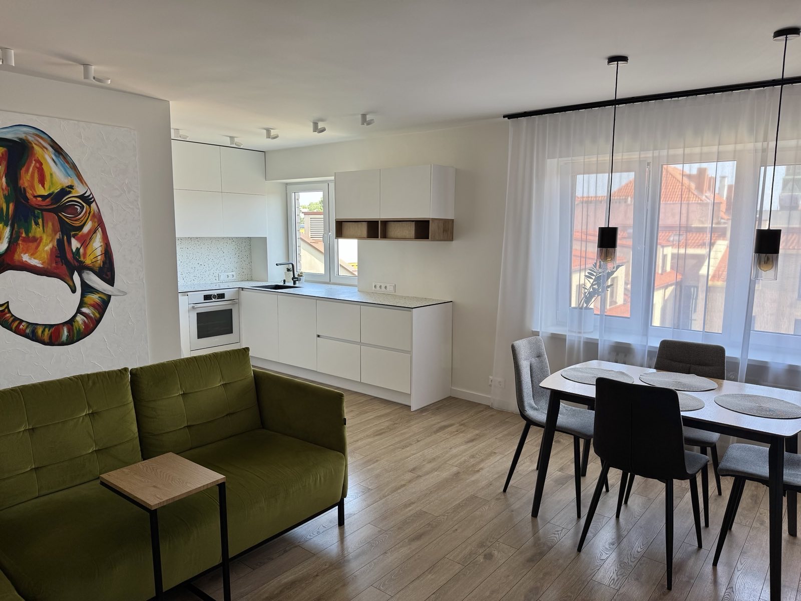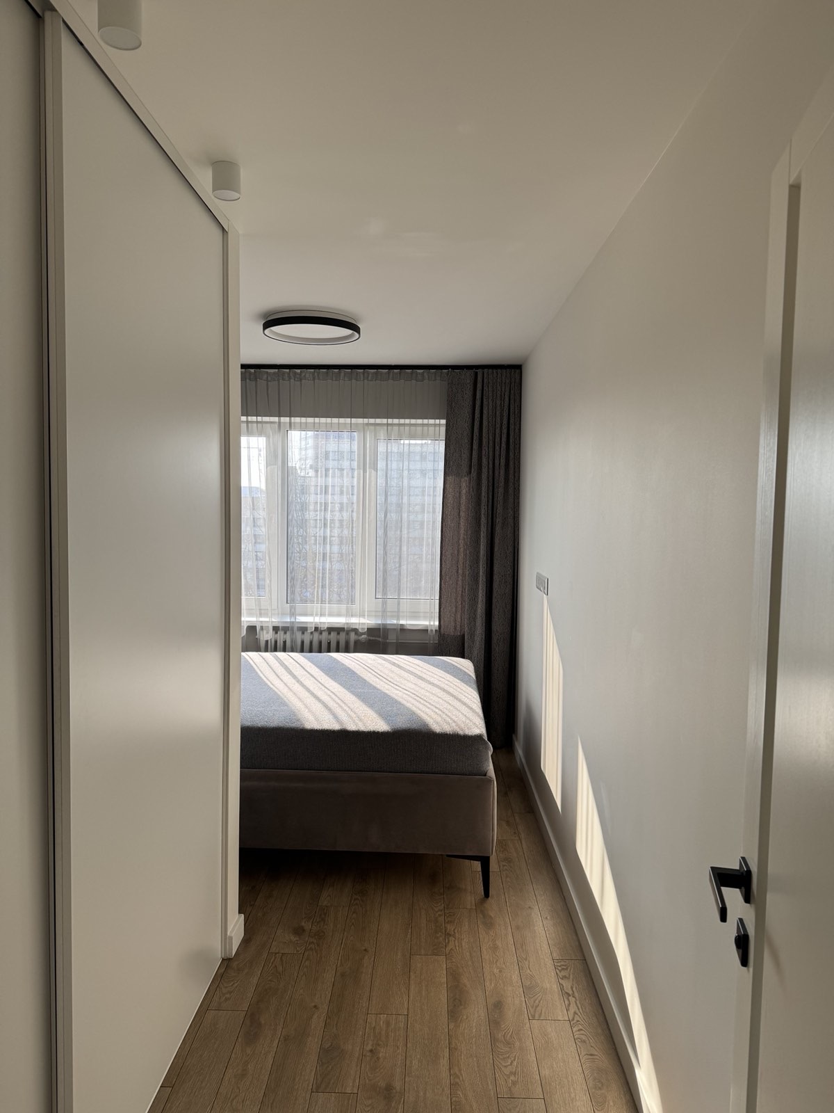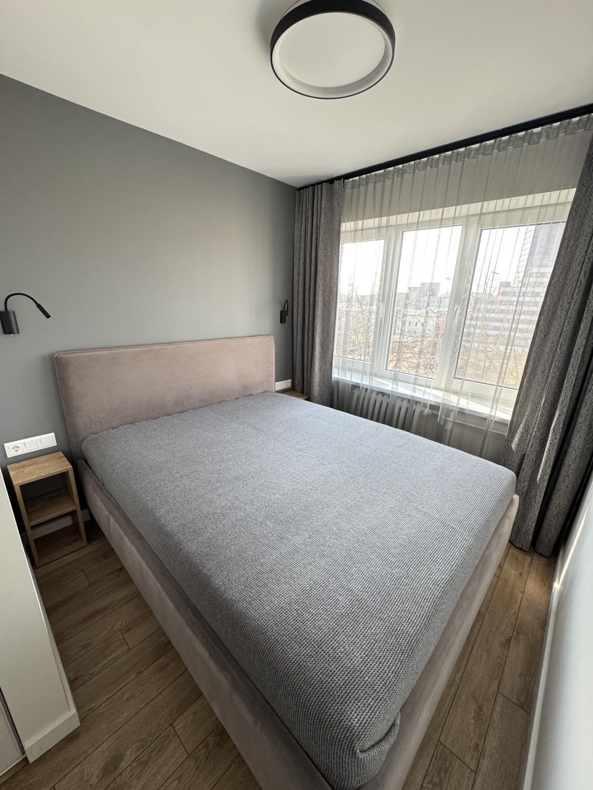 Svetainė sujungta su virtuve, vonia su WC kartu. Bute paliekami visi baldai ir Bosch buitinė technika.